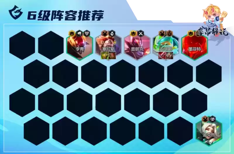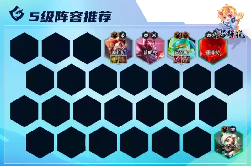 5人口不多停留,拉6人口后补三超级英雄,如果对局节奏慢,可卡着30金币追体系内三星棋子,金克丝多也可追三星,如有情报转职给予内瑟斯,薇恩换金克丝。