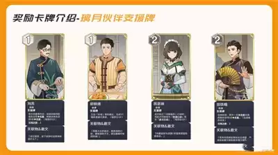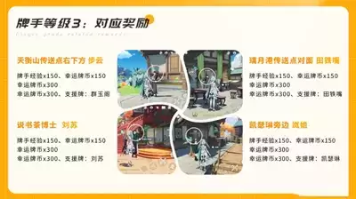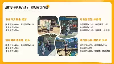 3、璃月NPC牌手对应的奖励在以下,会有经验和币以及4张伙伴支援牌和场景支援牌。