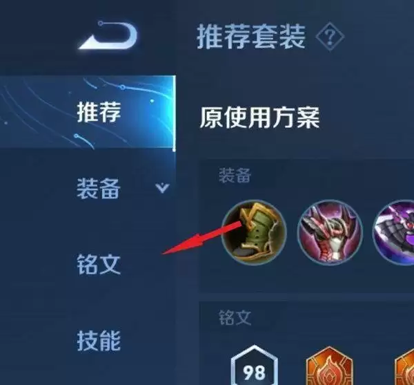 3、选择你要换铭文的那位英雄,右侧会出现,铭文页面。