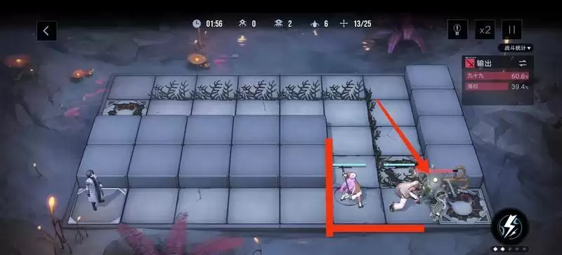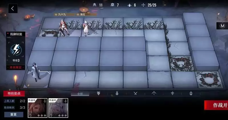 本关只能使用海拉和九十九这两个角色,因此对于合理的移动位置和使用大招都有一定讲究的,不然容易漏怪或者暴毙。