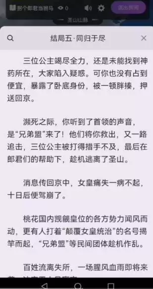 濒死之际,你听到了首领的声音,是"兄弟盟"来了!他们将你救出,又一路追击,三位公主被打得措手不及,最后在郎君们的帮助下,趁机逃离了圣山。消息传回京中,女皇痛失一病不起,十日后便驾崩了。