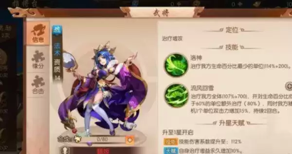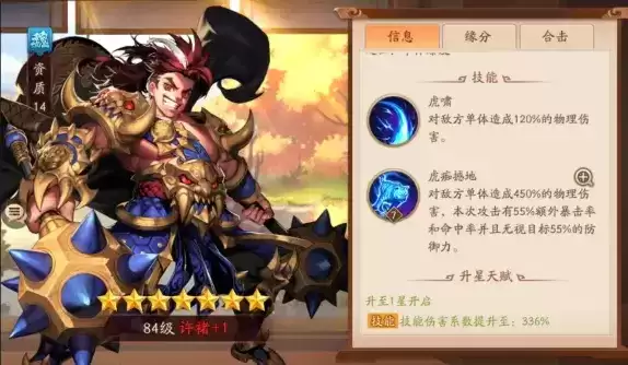第一个是许褚,他先说是因为要重点去培养。他是一个点一个点地去爆发,不管对方的防御是什么状态都能够打出暴击,这个国家的能做主力拿来输出的就是他了,不管是在对战中还是在副本里面他的速度都可以保证一个先手,然后把对位的敌人给*,非常畅快且干脆。第二个是夏侯惇,水平输出,机会控制,对生命值超过一半的敌人造成额外伤害。他虽然是红色的但是机制甚至比有些比他*的人都完美一些,在前期其他国家是很难抵挡他的,而且他还带有控,也是一个需要早点开始训练的人。第三个是张郃。交叉输出,能发暴能躲避,是我们*能干的将领。他可以在战斗中获得*高的输出,并以他的高躲避符和特技作为高质量的前排。排第四的是张辽和夏侯渊,他俩都可以减低敌人的怒气和防御,但是一个得放前面一个得放后面,位置不同,但其实都是以辅助为主的作用。能够给团队的其他人确保一个安全的环境,是非常好的副手。最后是忧郁的美女甄姬,她能给我们全团治疗,并且给随机选中的一个队友加攻击,虽然看起来没什么太大的亮点,但是在团战中的作用还是比较大的。