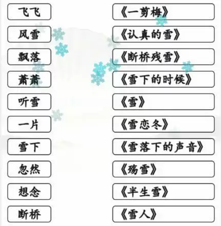 汉字找茬王雪之歌连线有雪的歌曲怎么通关