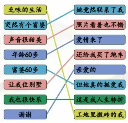 2、不过根据歌词也能连出几个,如果实在不知道的,还可以挨个试试,连线关卡是相对比较简单的,大家的试错成本*低