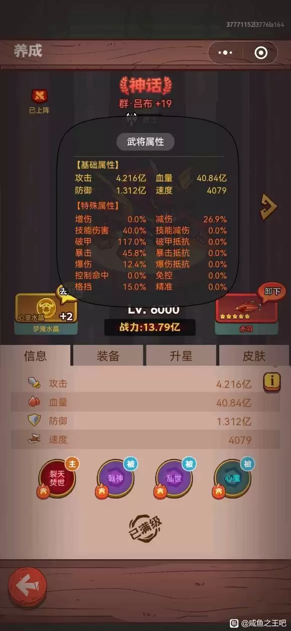 9.以上纯属个人思路,因为减伤这个属性除了拿资源,PK用处不大,这个游戏最终还是将资源转换成属性PK。吕布这个流派只能玩献祭流,低氪偶尔也能让大佬浪费一个复活币就是我们的快乐了。