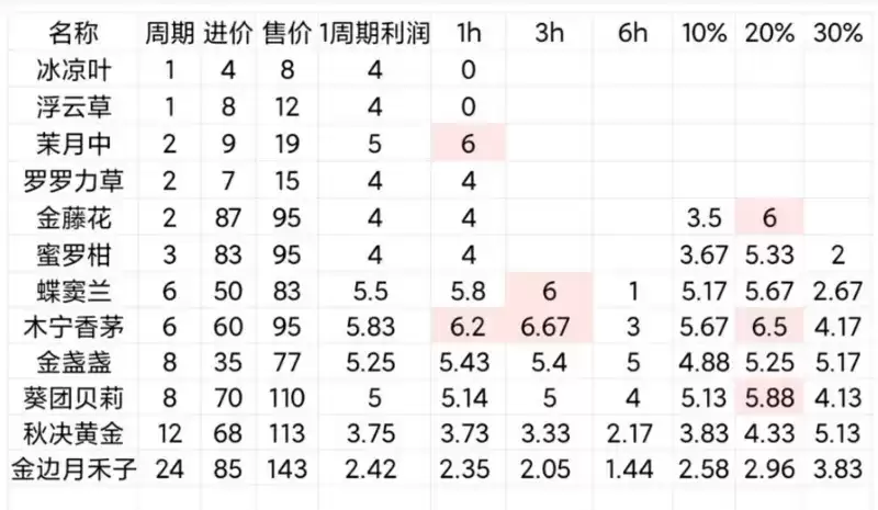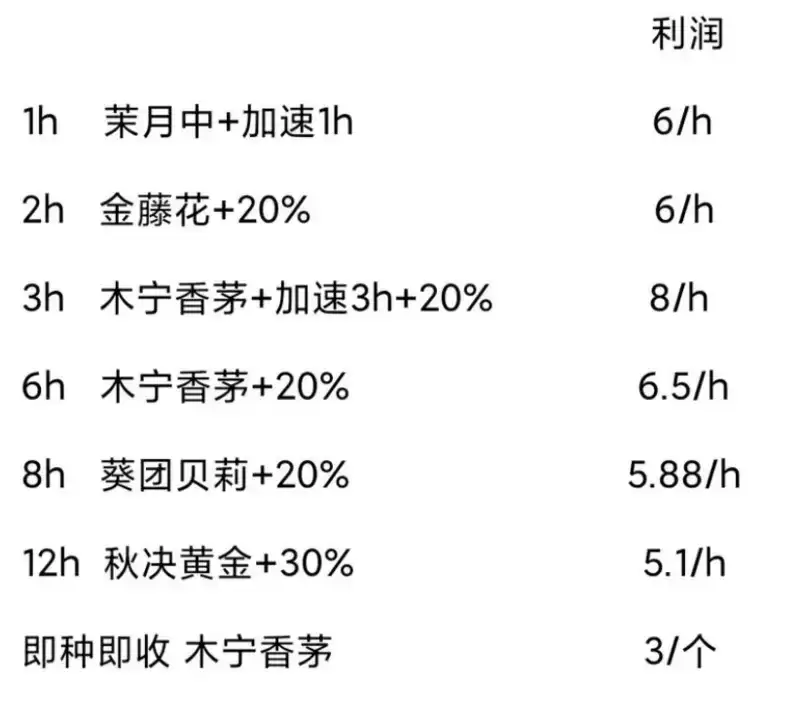 种田作为主职工作之一,是一种能稳定地获取收入的来源。下面简单地计算了下各个种子每一小时的利润,来获得收益最大化。