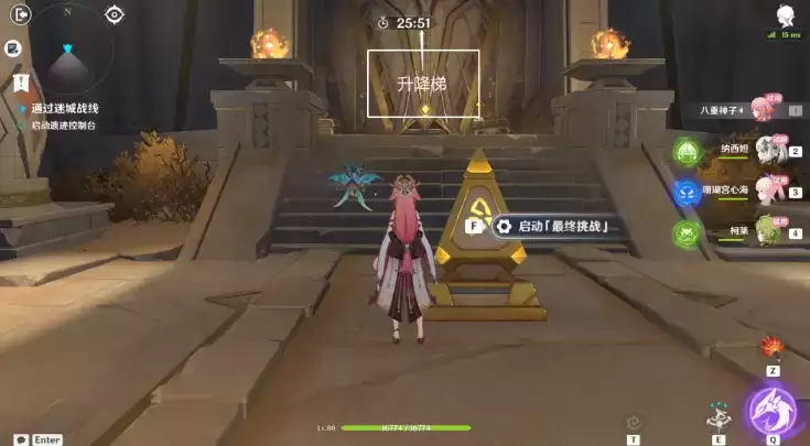 8、激活三个符文,回到中间,启动[最终挑战],乘坐升降梯上楼。