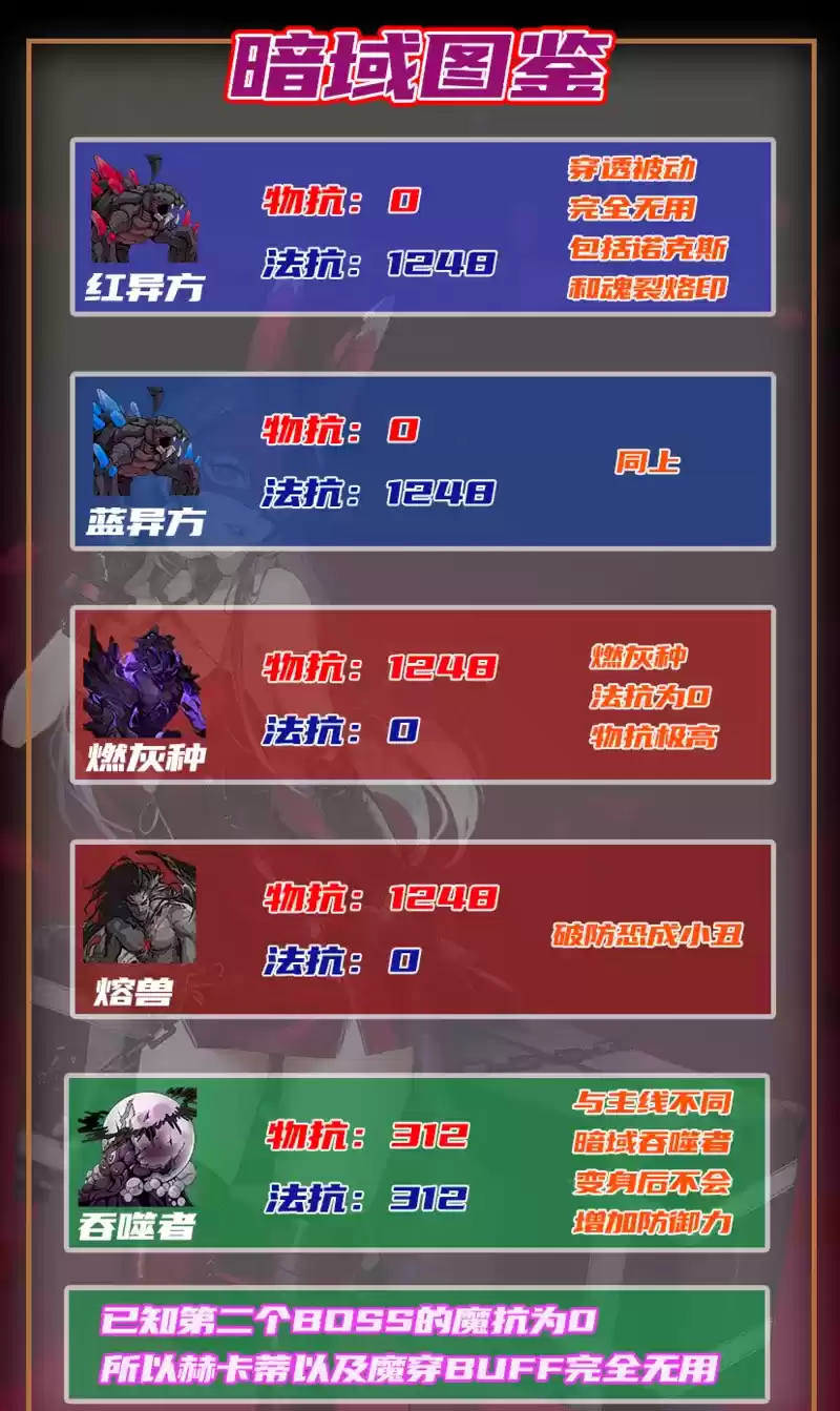 《无期迷途》暗域BOSS属性介绍: