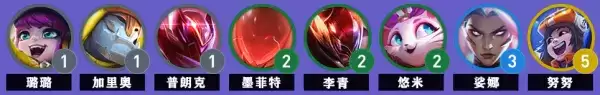1.阵容组成:【璐璐、加里奥、船长、石头人、盲僧、猫咪、琴女、努努】;