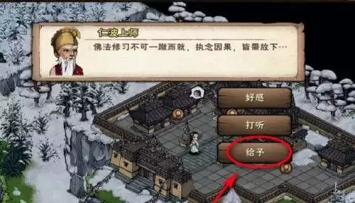 3、和仁波上师对话,点击给予选项。