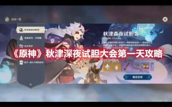 《原神》秋津深夜试胆大会是游戏中的一个最新活动,玩家在这次的活动中需要完成的内容还是有很多的,可能有玩家还不清楚这次的活动*天挑战要怎么过,下面小编就给大家整理了具体的攻略,一起来看看吧!