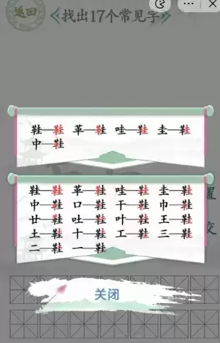 汉字找茬王鞋字找出17个常见字过关攻略
