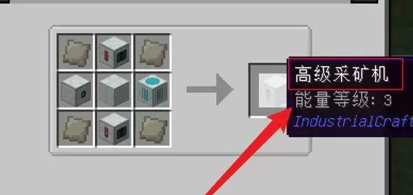 2、放入下图所示的材料,加工出一台“高级采矿机”。