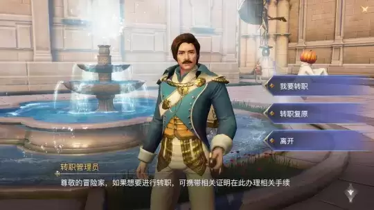 通过NPC了解到转职的事项,选择好要转的职业后,再输出文字【确认转职】,即可完成转职。