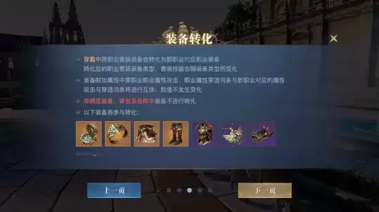 只有身上穿戴的装备会进行变化,在背包中的装备不会进行变化。职业套装会变成转职后的职业,装备上的附加属性的职业属性会进行改变,例如弹药学家在转职成吟游诗人,元素属性攻击和穿透会变成自然属性攻击和穿透。