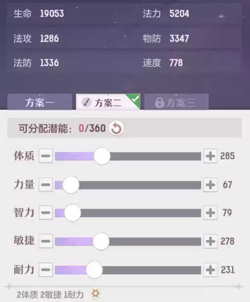 关于体耐的选择,建议是2:1的比例,因为普陀不加智力所以法防偏低,导致体质过低很容易被群死,同时我们的奶量是根据血量上限加血的,更高的体质也能让我们自己吃到更多的奶量。