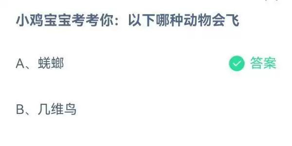 2022支付宝蚂蚁庄园12月29日的题目已经更新了,今天的题目为:小鸡宝宝考考你以下哪种动物会飞?蜣螂还是几维鸟?正确答案是什么,可能很多小伙伴可能还不太清楚。下面小编就为大家带来了正确答案分享,希望能帮助到你。