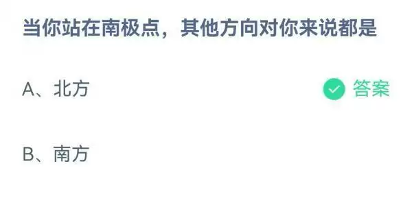 2022支付宝蚂蚁庄园12月28日的题目已经更新了,今天的题目为:当你站在南极点其他方向对你来说都是?北方还是南方呢?正确答案是什么,可能很多小伙伴可能还不太清楚。下面小编就为大家带来了正确答案分享,希望能帮助到你。