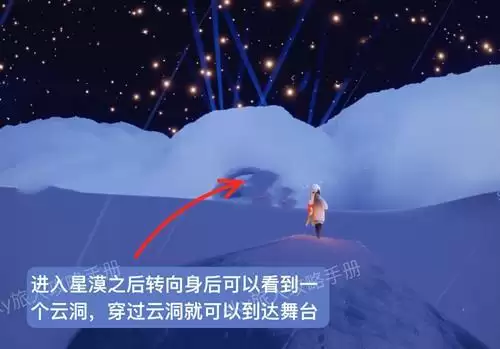2、穿过洞穴来到星光沙漠地图,转身往后面飞过去。