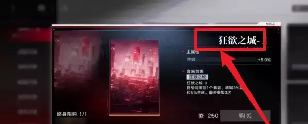 3、在灰烬兑换中找到“狂欲之城”,点击购买即可兑换成功。