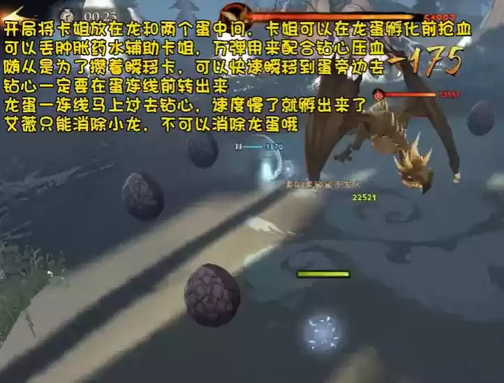1、开局将卡姐放在龙和两个蛋中间,卡姐可以在龙蛋孵化前抢血。