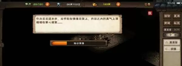 2、出现推动铜像的进度条,等它拉满。