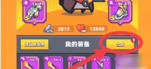 放入两件紫色装备,点击合成按钮获得史诗装备。