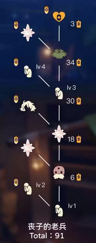 2、丧子的老兵,兑换全部道具需要91个季节蜡烛;