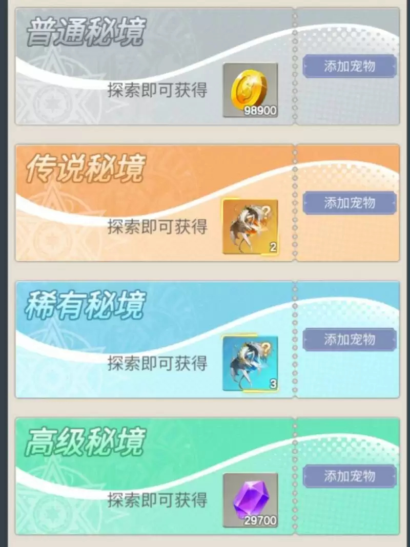 宠物秘境里头的派遣那里不是橙色就好。普通给的一样花费的红钻却很少,在宠物秘境派遣那好好琢磨琢磨。宠物等级一定记得留一个高等级。