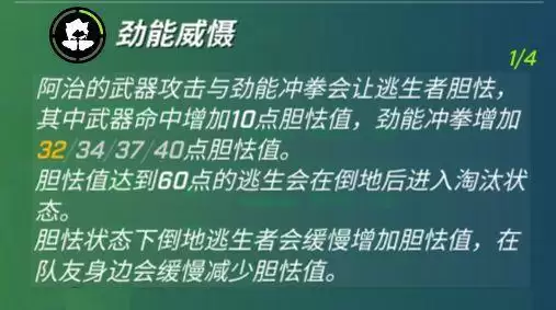 劲铠·阿治的定位是淘汰型追捕,他正面战斗力强悍,可以通过多次地击倒将逃生淘汰!强大的劲能冲拳配合自保能力使他很难在正面对抗中落于下风。