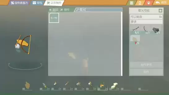 小伙伴们可以通过砍伐树木以及收集部分其他材料来制作一把“取火弓钻”。