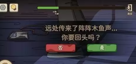 2、接着就会遇到第一个问题“远处传来了阵阵木鱼声……你要回头吗?”这里选择【否】。