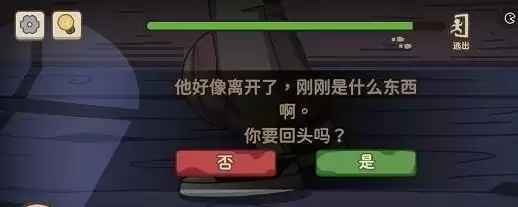 4、接着继续向前走,这时就会出现第三个问题“他好像离开了,刚刚是什么东西啊,你要回头吗?”继续选择【否】。
