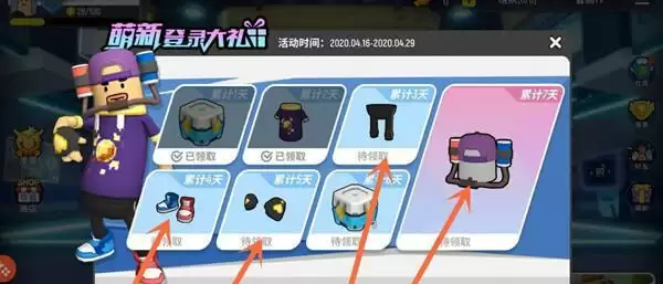 3、每天会送不一样的奖励,上衣、裤子、鞋子等都是分开领取的。