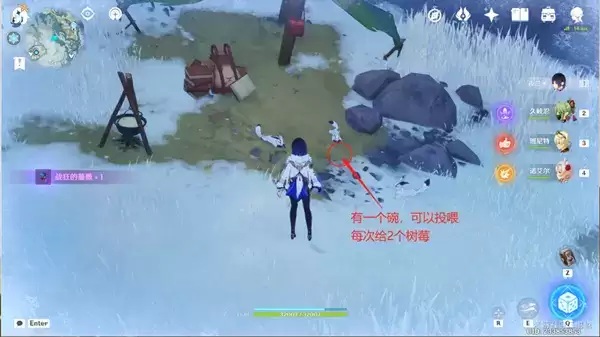 3、进入营地中,找到帐篷,这里有小狐狸,我们要每隔两天就过来喂食。