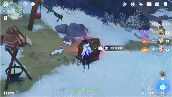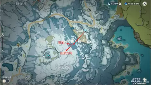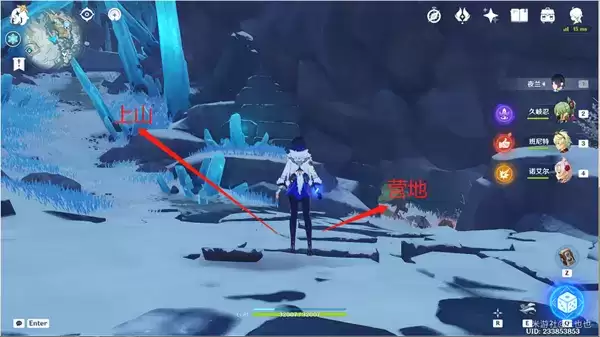 1、传送到雪山神像那里,朝着山顶和营地的方向走过去。