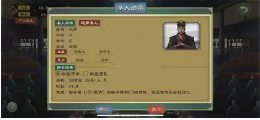 ④国中群贤:宗亲、朝臣、门客、游士有几率增加0~2智略,成功增加后人物智略不会超过95;都城该圣人流派文化量+100