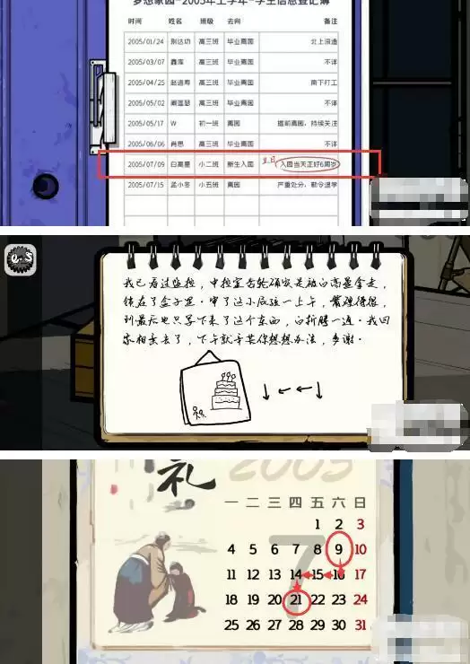 2、根据档案柜中的信息知道白高星的生日是07-09,再根据他的箭头提示在日历上找出密码箱的答案是:0721。