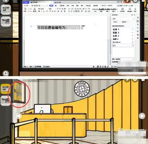 8、使用火柴点燃烟花进入2023年,先收集可以收集到的报纸,再进入图书馆查看电脑,全选之后就能出现志愿者编号,打开墙上的编码得到一张报纸,编号为:527741。