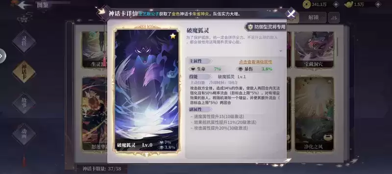 1、破魔狐灵:幽王更偏向辅助,所以破魔狐灵的技能组非常适合幽王。无法强化(持续回合内敌方无法施加buff)的效果更是非常罕见的debuff。在面对buff手多的阵容中有非常出色的表现