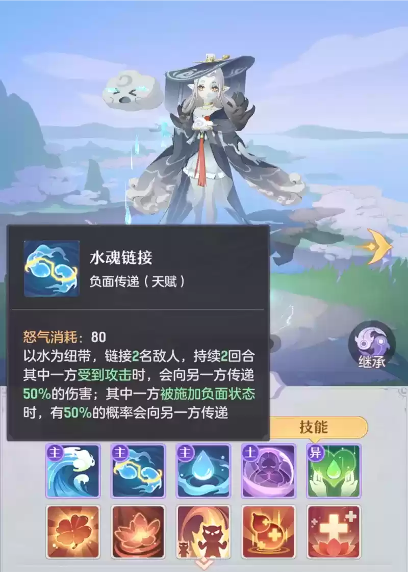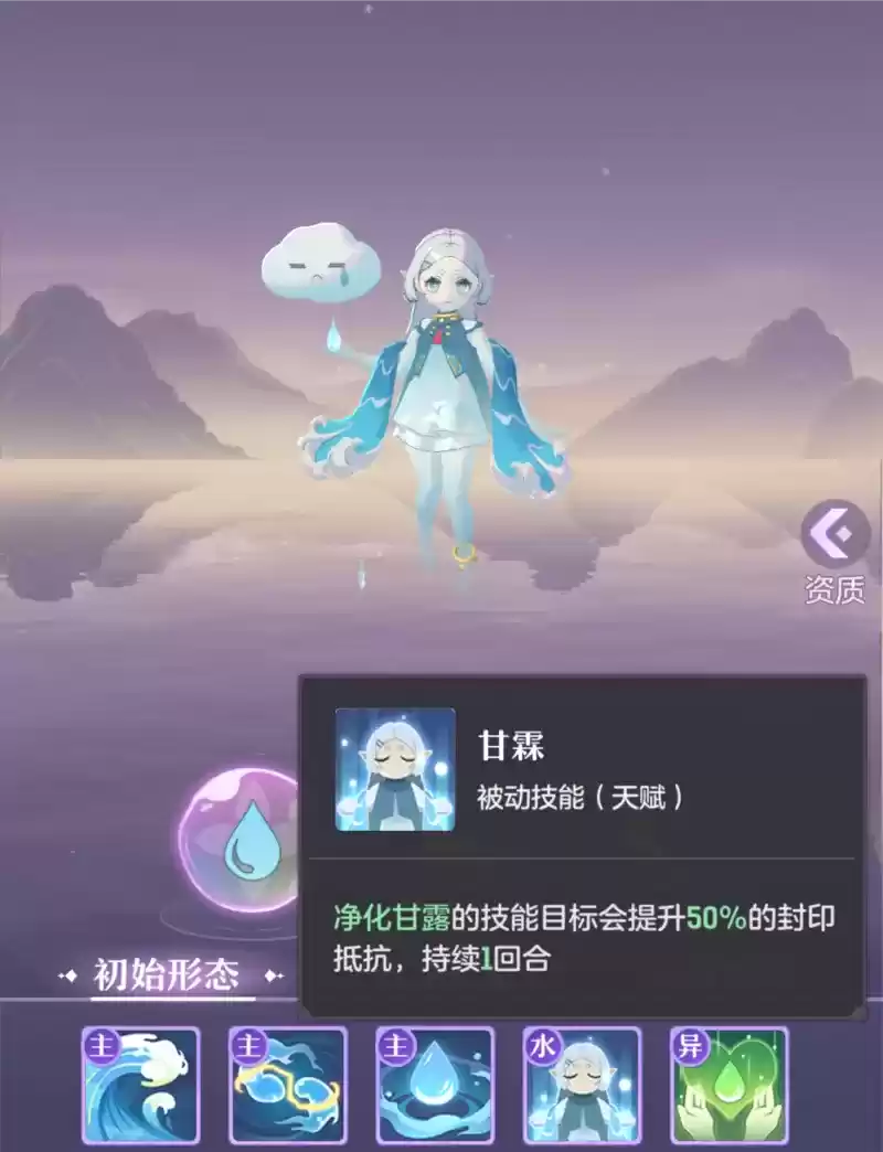 主要解封技能,冷却时间很长,但是作用毋庸置疑,配合水系雨师,甘露天赋还给了1回合封印抵抗。