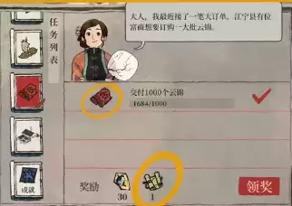 2.交付足够数量的【云锦】即可得到江宁县地图;