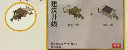6.由于新城需要物资,建议先升级或者建造仓库,仓库升级和建造所需材料为【菜肴】、【原木】【木板】。