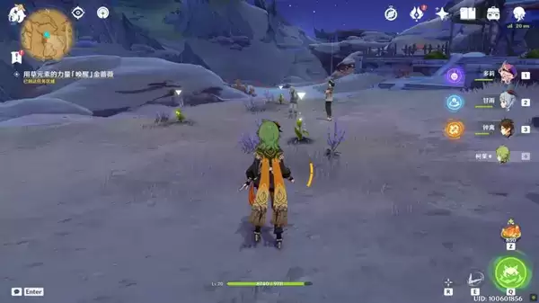 3、切换草属性角色,使用草元素的去唤醒金蔷薇。