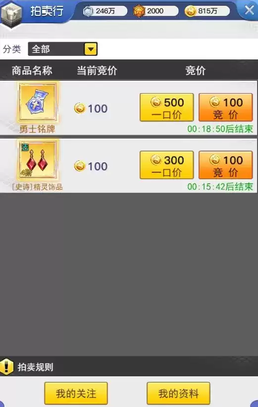 1、游戏中Boss掉落所产出的道具拍品可以选择上架拍卖,默认上架本服拍卖行。