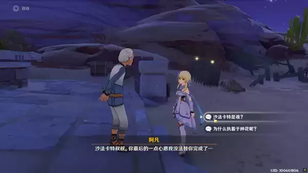 4、继续跟阿凡对话,他告诉我们种花是沙法卡叔叔最后的愿望。