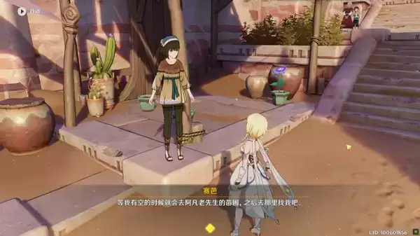 6、看完笔记,去村子里找塞芭对话。