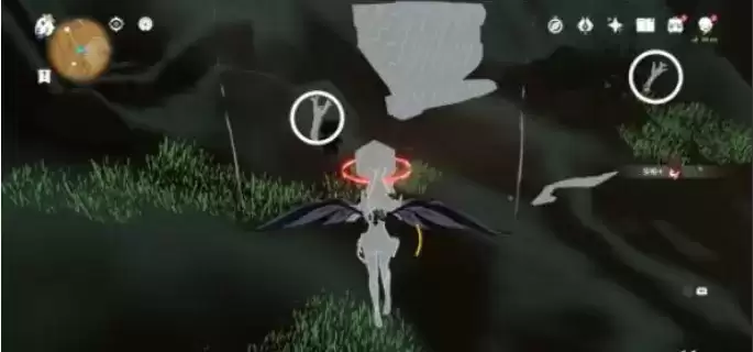 1.首先,从愚妄行宫右上方的锚点出发,飞到上图六角星标记处,也就是巨人左手的食指上。