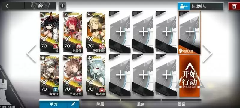 开局部署顺序为煌→小羊←小火龙←塞雷娅→能天使→华法琳↑