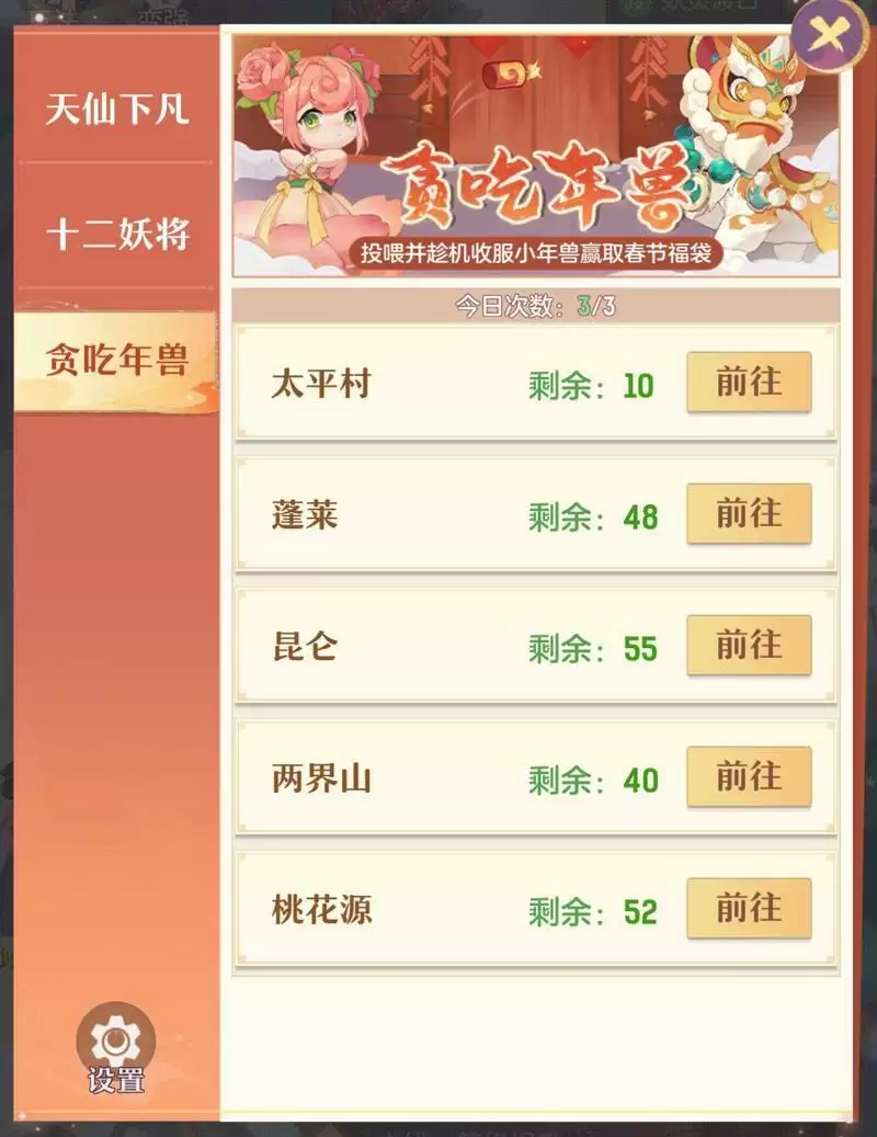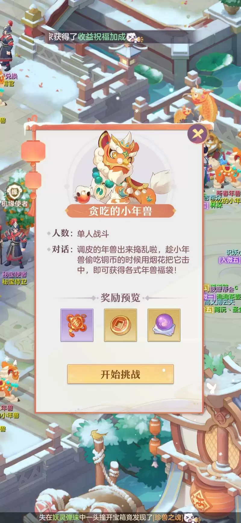 1、年兽的刷新时间游戏里写的很清楚,这里就不复述了,反正到点了大家去随便一个地图,满地都是,每天只能打三次,也不存在抢怪的问题